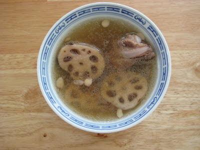 蓮藕4個、排骨半斤、蜜棗3顆、南杏一點點、北杏一點點、鹽
